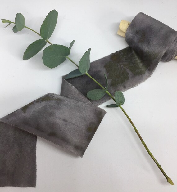 Steel Geranium Plant Dyed Leaf Printed Silk Ribbon Hand Dyed Habotai Ribbon Styling Ribbon Botanical Print Ribbon Floral Ribbon Gift